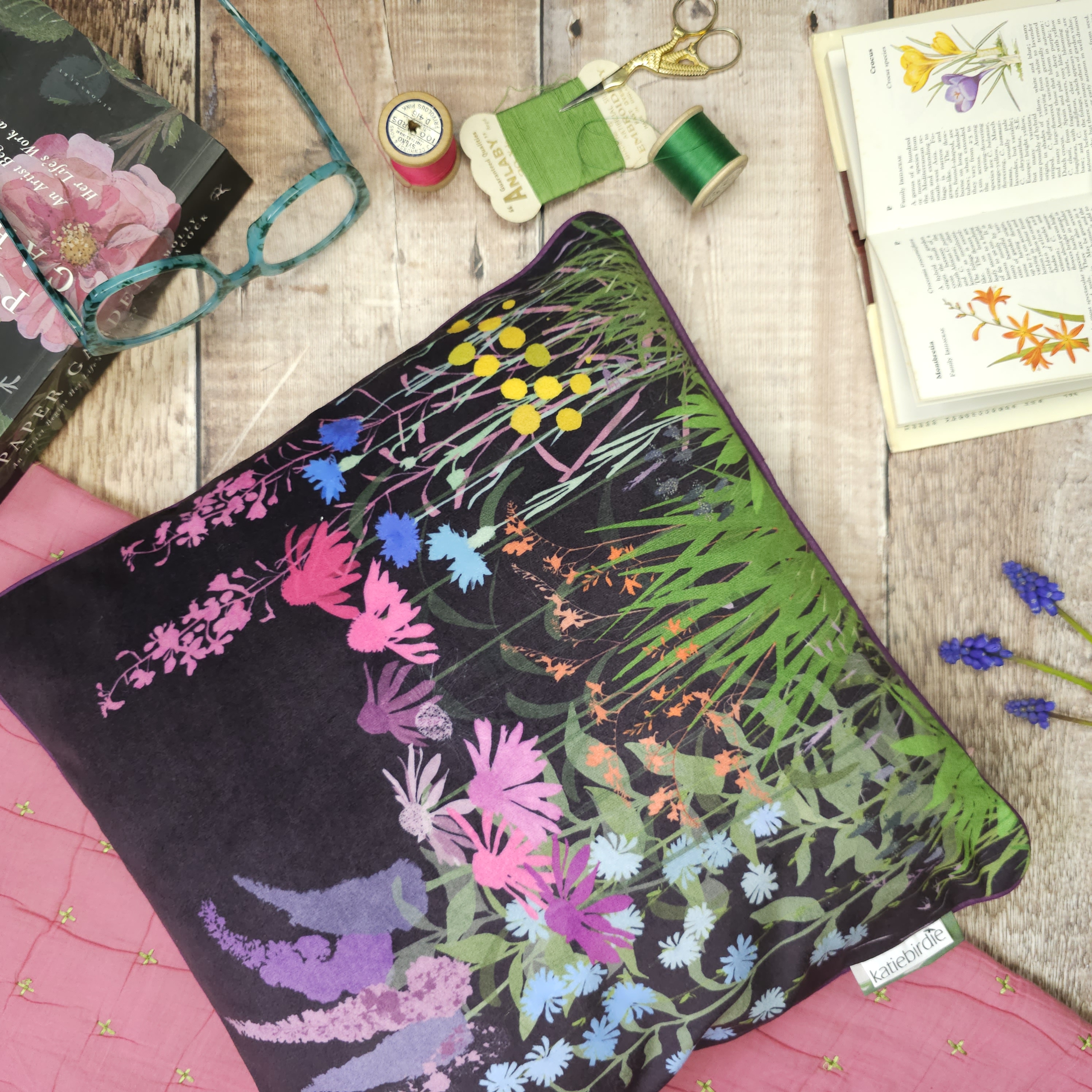 Katie creates unique designs inspired by her natural surroundings and the busy layers of pattern, colour and tiny little details found there.