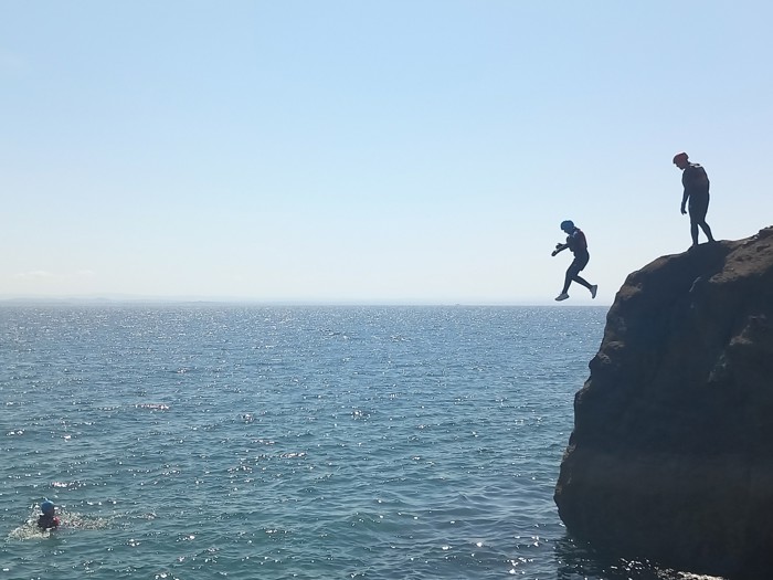 Having some water confidence and a sense of adventure is required for coasteering.