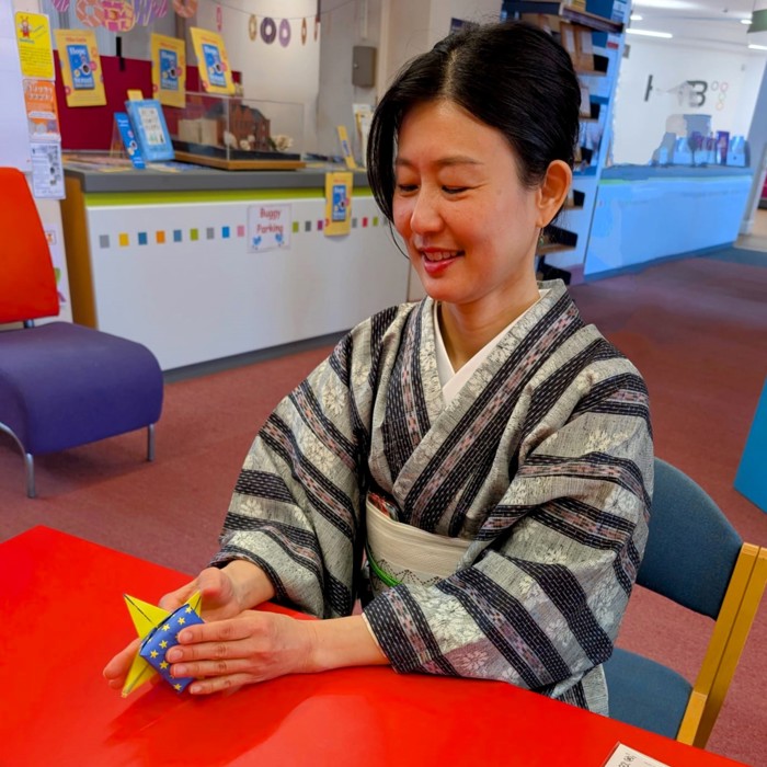 You'll find the origami station near the children's area on the first floor. There will be space for 10 people at a time, but if it's busy, please pop back later. Hiromi will be with us from 11am- 12.30pm.