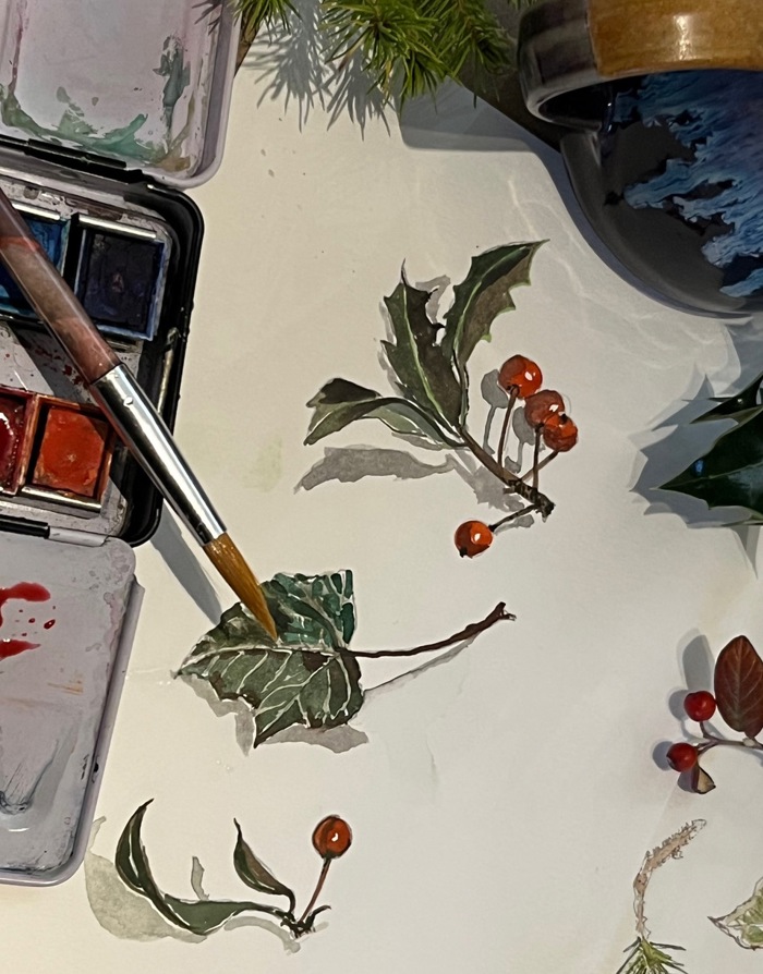 Join Nationally renowned Artist Tessa Asquith-Lamb for a botanical watercolour class with a seasonal focus on winter foliage. Enjoy carefully sketching and painting from evergreen holly, ivy and fir and adding shadowing for realism. Lots of demonstrations will be given and the class is suitable for all abilities.